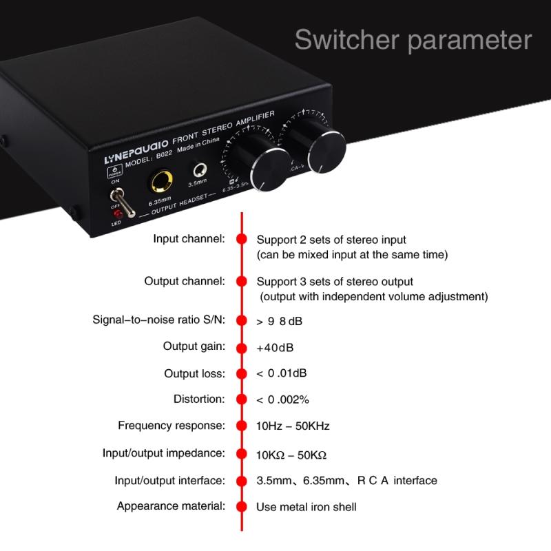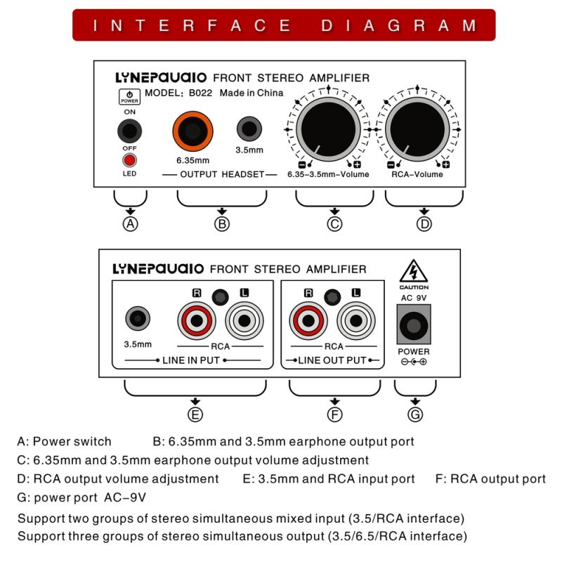 12. Number of output channels: 3 groups of stereo output (3.5mm, 6.35mm, RCA can be output at the same time)