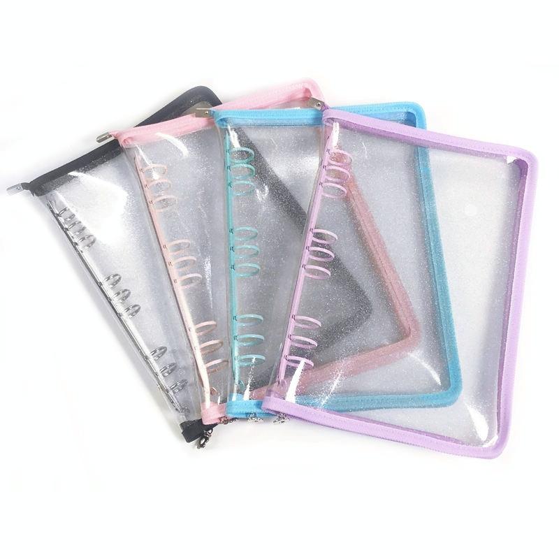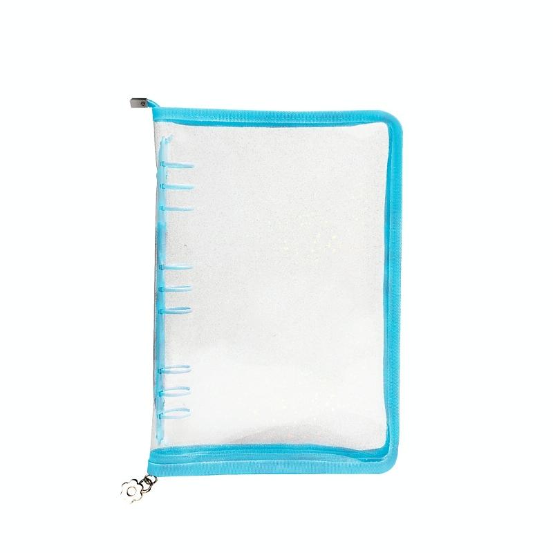 B5 9 Rings Loose-leaf Journal Clear PVC Cover Zipper Planner Notebook Without Inner Pages(Sky Blue)