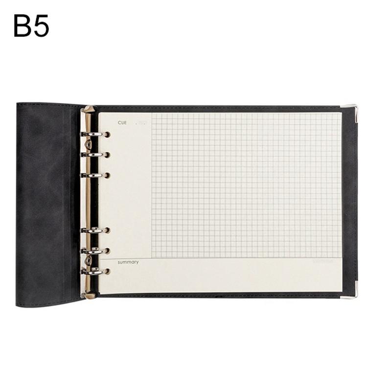 B5 Faux Leather Loose-leaf Grid Notebook, Style:Cornell Checkered Core(Black)