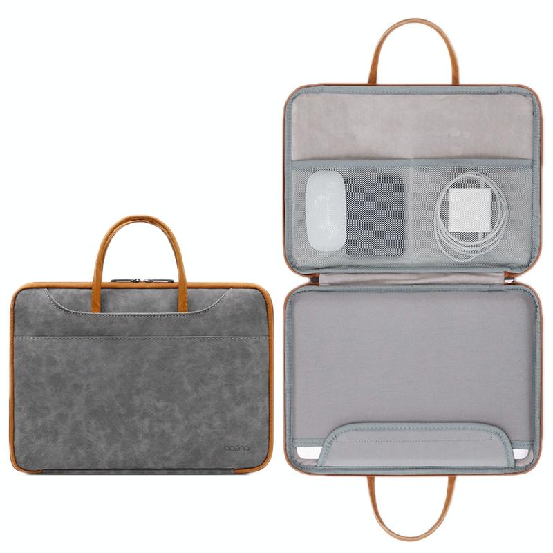 Baona Leather Fully Open Portable Waterproof Computer Bag, Size: 13/13.3 inches(Gray Brown) (Baona)