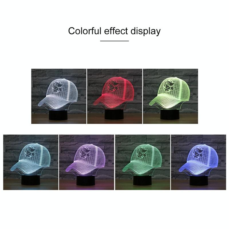 Baseball Cap Shape 3D Colorful LED Vision Light Table Lamp, USB & Battery Version