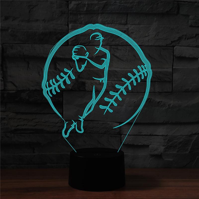 Baseball Sport Shape 3D Colorful LED Vision Light Table Lamp, Crack Touch Version