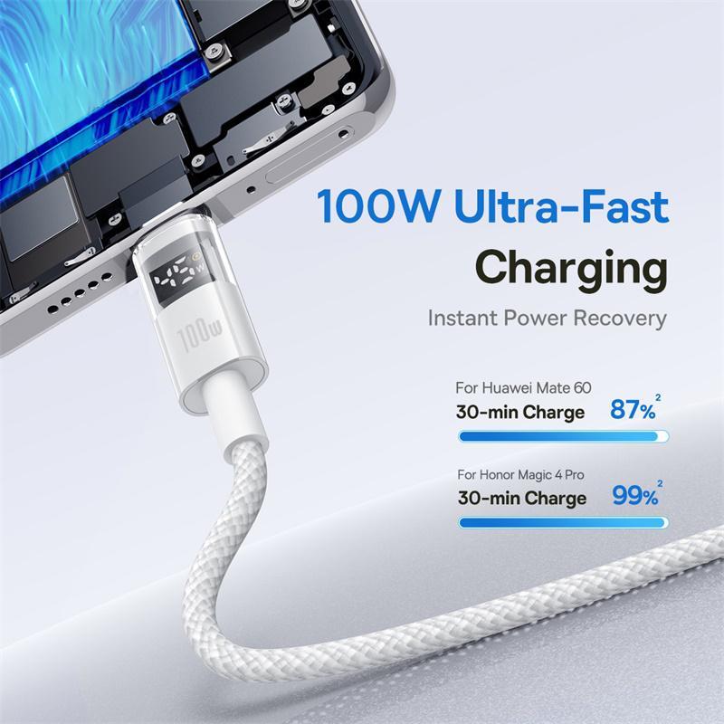 Baseus Display 100W USB-A to Type-C Fast Charging Cable, Length:1m(White) (Baseus)