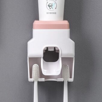 2pcs 2 In 1 Wall-mounted Automatic Toothpaste Squeezer Toothbrush Holder(Pink)