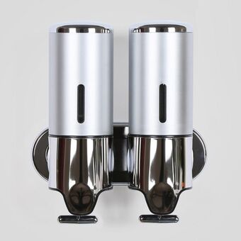 Διπλός Διανομέας Υγρού Σαμπουάν/Αφρόλουτρου για Ξενοδοχεία, Τοίχου, Χωρητικότητα: 1000ml (Ασημί)