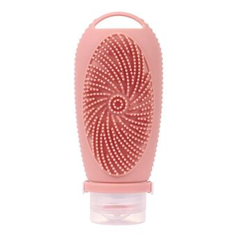 100ml 2 In1 Travel Dispenser Bottle Silicone Portable Massage Brush Shampoo Lotion Divider Bottle(Light Pink)