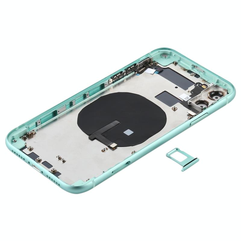Battery Back Cover (with Side Keys & Card Tray & Power + Volume Flex Cable & Wireless Charging Module) for iPhone 11(Green)