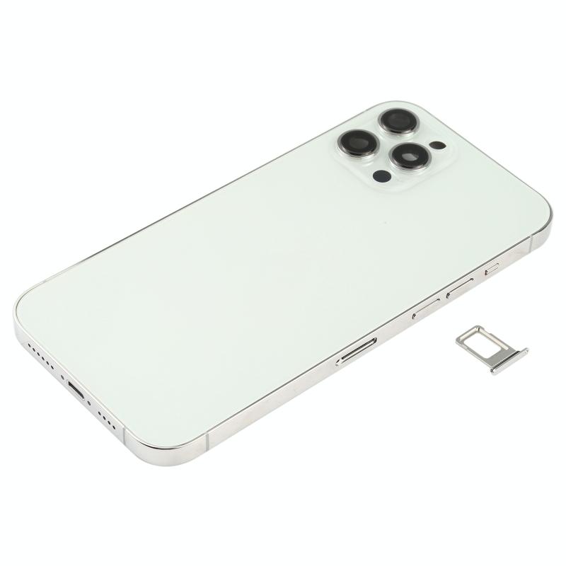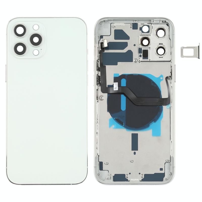 Battery Back Cover (with Side Keys & Card Tray & Power + Volume Flex Cable & Wireless Charging Module) for iPhone 12 Pro Max(White)