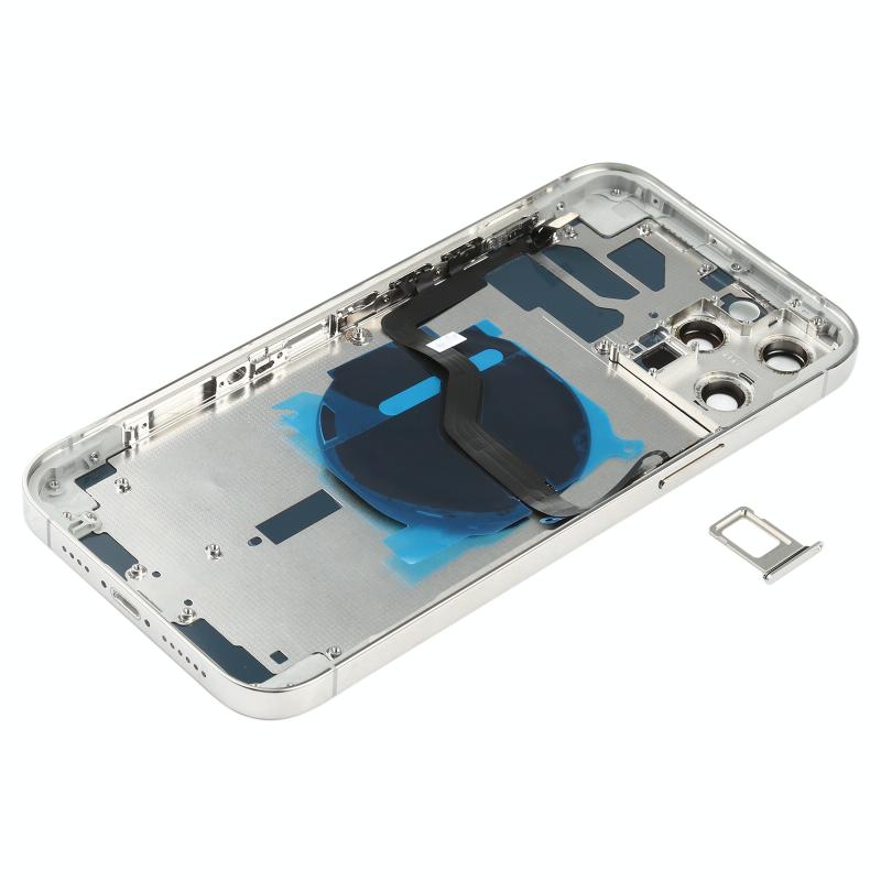 1. Back cover replacement with Side Keys & Card Tray & Power + Volume Flex Cable & Wireless Charging Module for iPhone 12 Pro Max