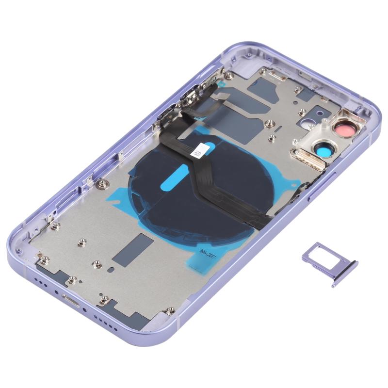 Battery Back Cover (with Side Keys & Card Tray & Power + Volume Flex Cable & Wireless Charging Module) for iPhone 12(Purple)