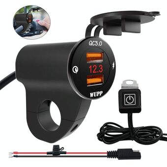 WUPP ZH-975B3 Motorcycle Aluminum Alloy Waterproof Mobile Phone Double QC3.0 Quick Charging Charger with Voltmeter(Black) (WUPP)