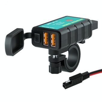 WUPP ZH-1422C2 Motorcycle Square Dual USB Fast Charging Charger with Switch + Integrated SAE Socket + 1m SAE Socket Cable (WUPP)