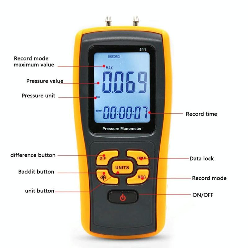 BENETECH GM511 LCD Display Pressure Manometer(Yellow) (BENETECH)