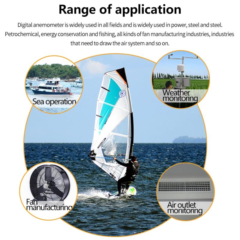 - Air Velocity: 0-45m/s, 0-140km/hr, 0-8800Ft/min, 0-88 knots, 0-100mph(accuracy +/-3%)