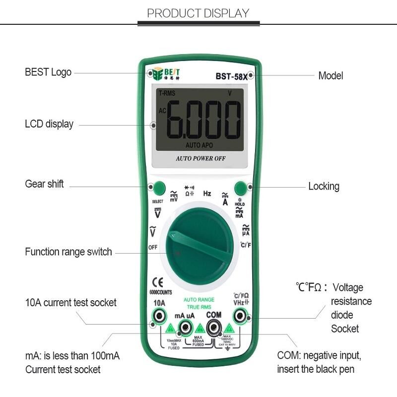BEST BST-58X Multi-function Digital Multimeter Automatic Range Four Position Semi Backlight Display Intelligent Anti Burning (BEST)