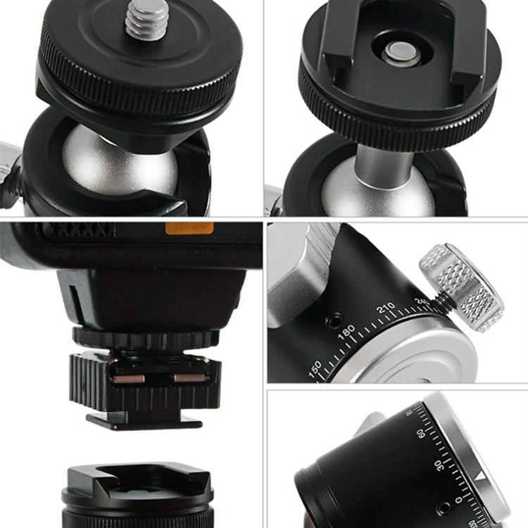 6. It is both a gimbal and a cold shoe, the ball rotates +360 degrees, and it can rotate horizontally