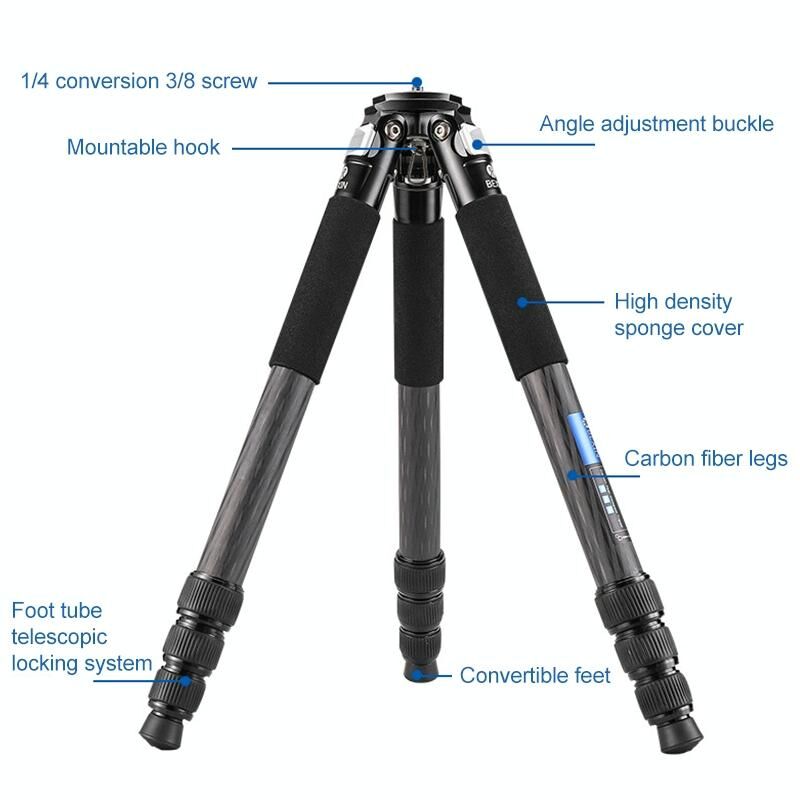 1. Tripod tube is made of high-density carbon fiber, which greatly reduces the weight of the product.