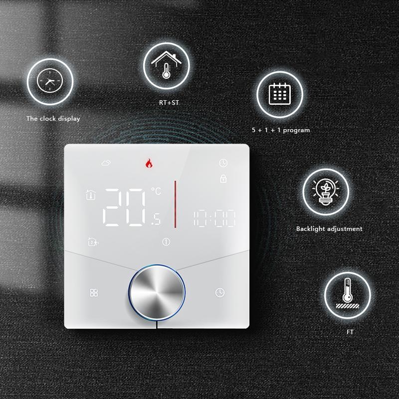 4. Preset adjustment of 5+1+1 mode in a week, programmable setting of 6 time periods a day, green energy saving, Less cost, more intelligent and environmental protection;
