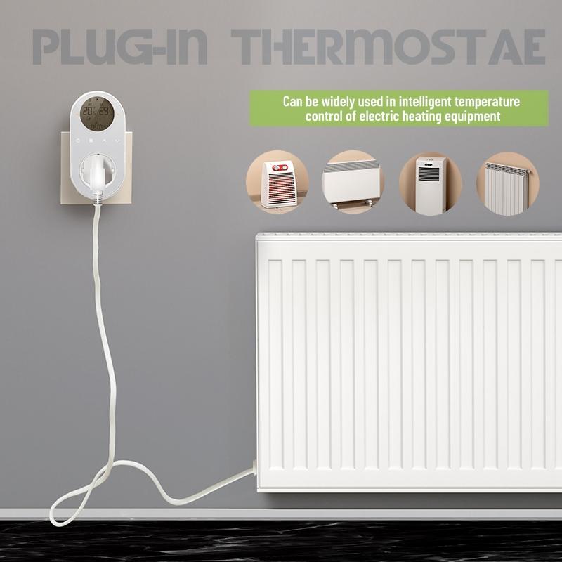 BHT12-CW Plug-in LCD Thermostat With WiFi, EU Plug(Black)