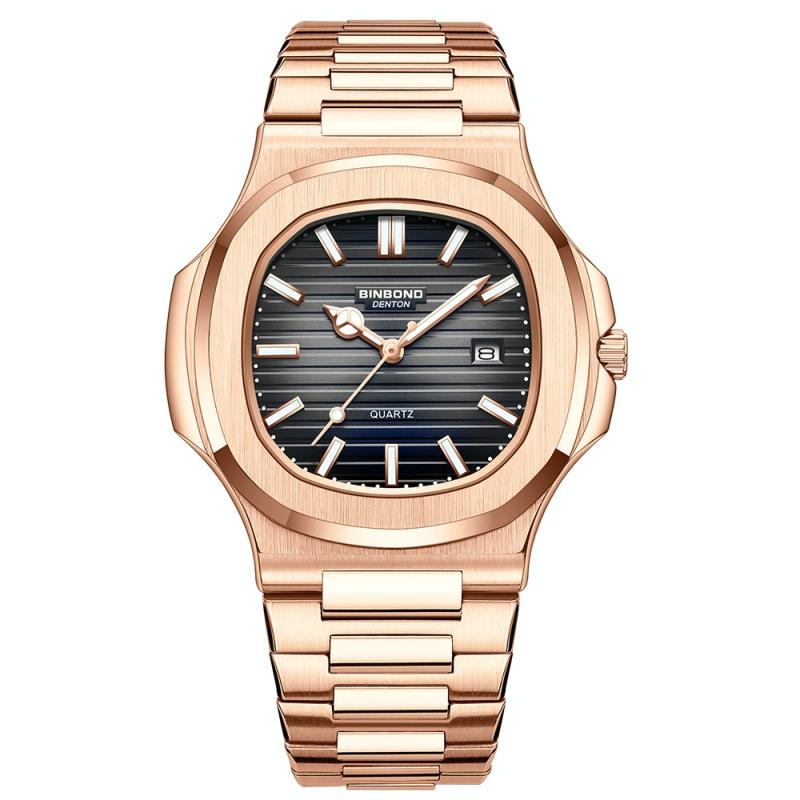 BINBOND B1885 30m Waterproof Retro Luminous Square Men Quartz Watch, Color: Rose Gold-Black (BINBOND)