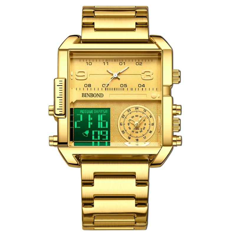 BINBOND B3332 Square Multifunctional Sports Quartz Waterproof Watch(Full-gold-Gold) (BINBOND)
