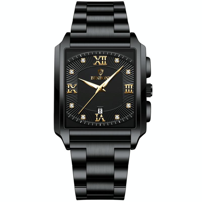 BINBOND B4143 Rectangular Outdoor Men Waterproof Quartz Watches(Black Steel-Gold) (BINBOND)