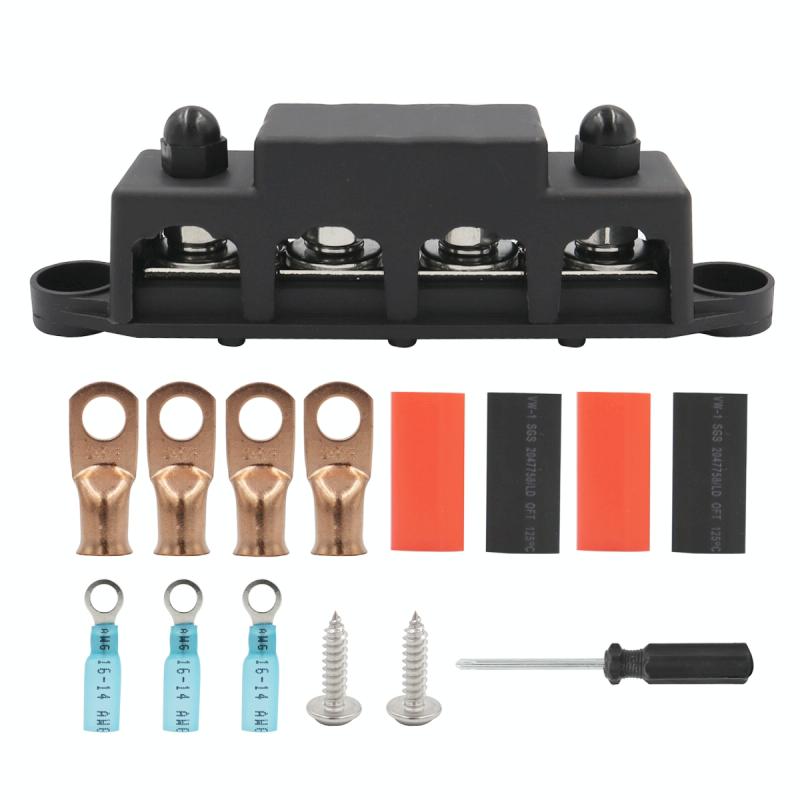 Black M10 Stud RV Ship High Current Power Distribution Terminal Block with Accessories