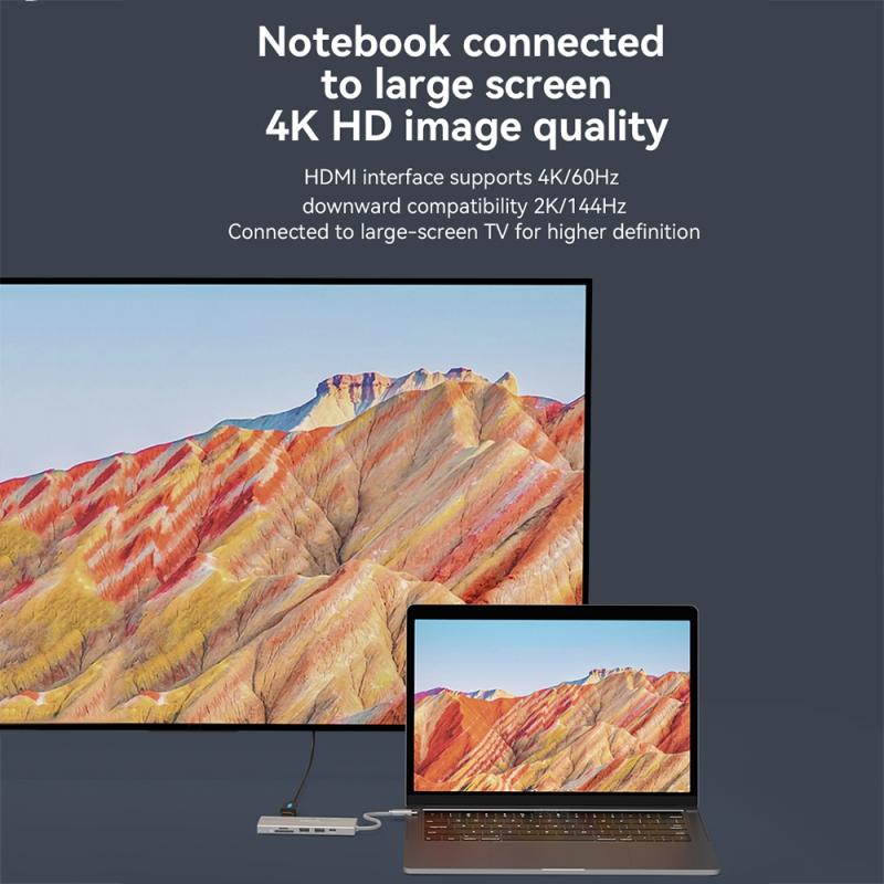 4. Nine-in-one interface: HDMI, Type-C, USB3.0 x 3, PD, SD, TF, Gigabit Ethernet port
