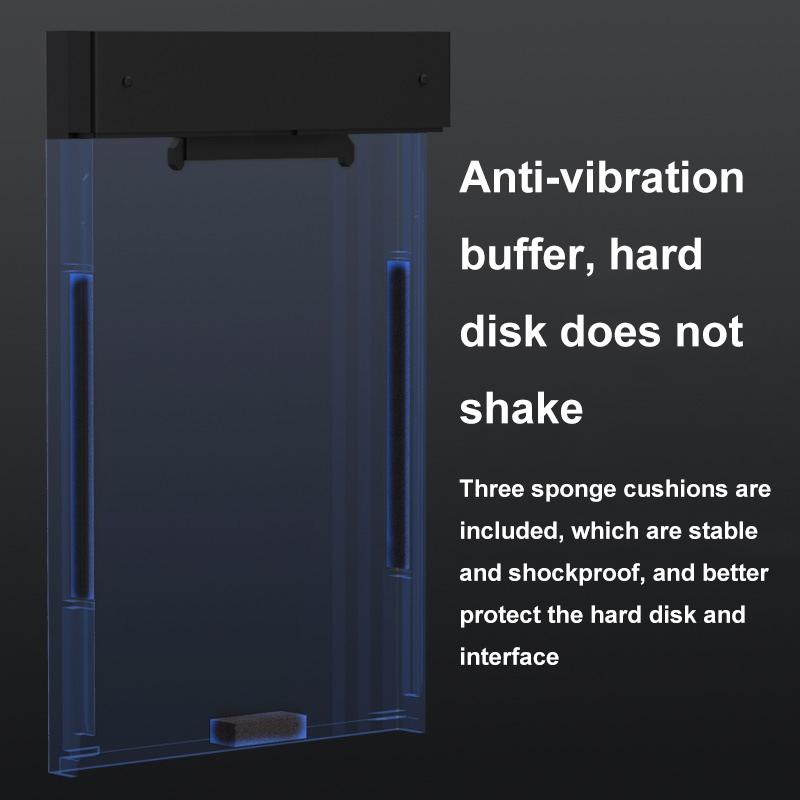 4. Three sponge cushions are included for shock-proof buffering, so that the hard disk does not shake and better protect the hard disk and interface