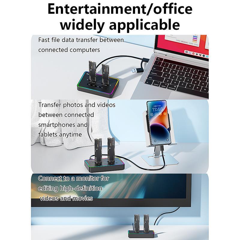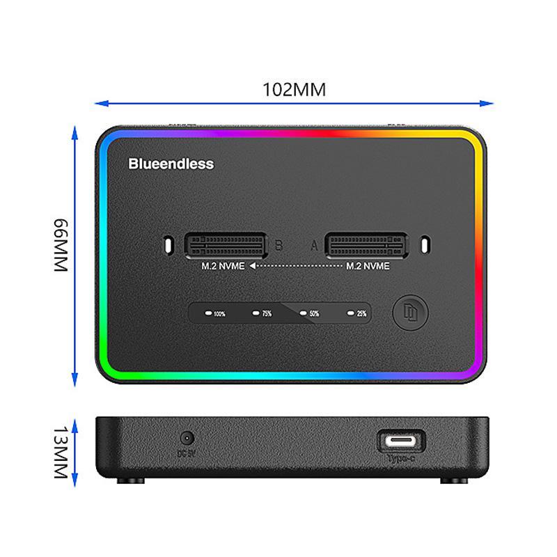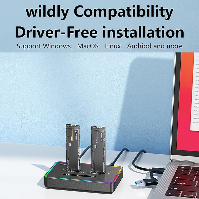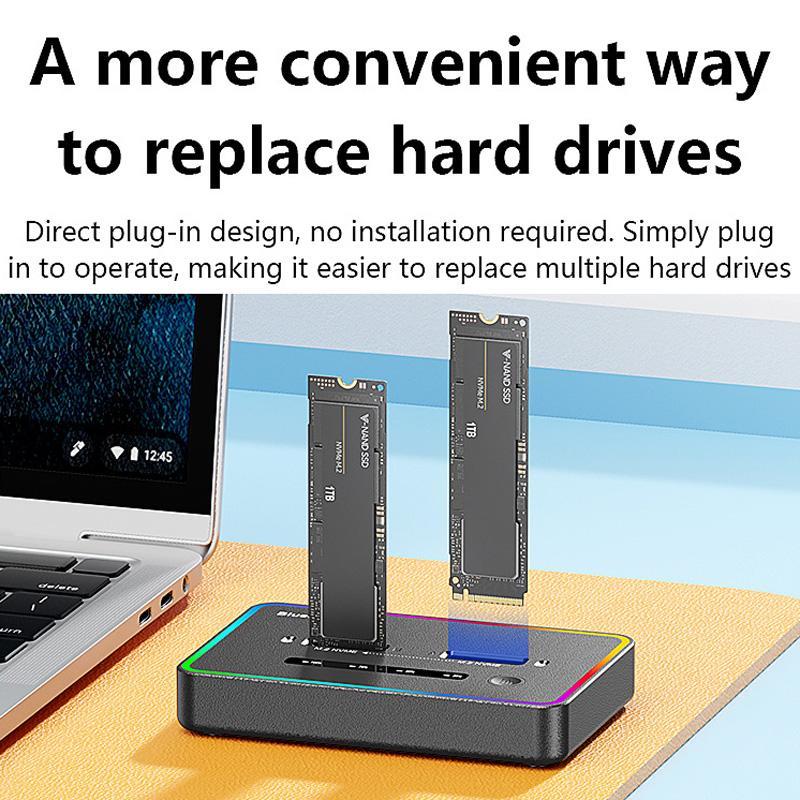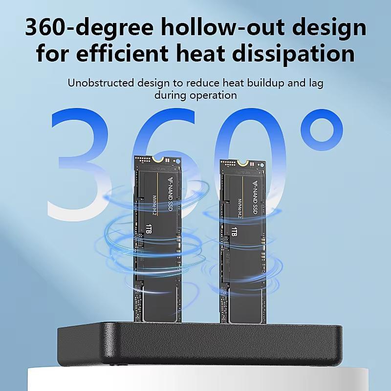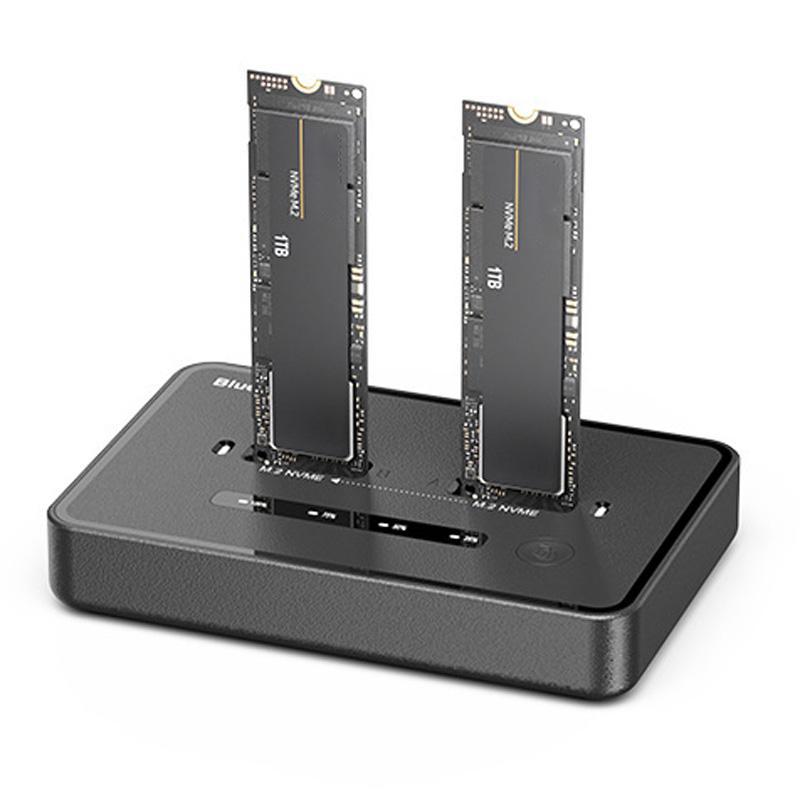 1. No computer connection needed. simply insert two drives into the dock, press the copy button, and data from the source drive will transfer to the target drive—making backups effortless (note: both drives must use the NVMe protocol)