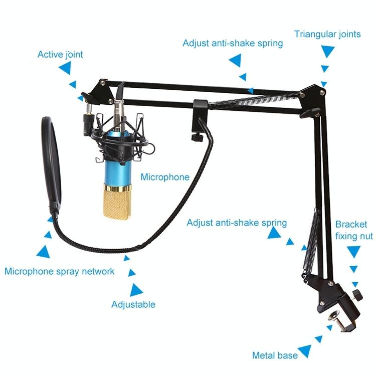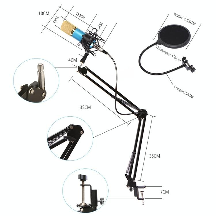 1. Professional Recording Studio Equipment: Equipped with BM-800 microphone, Shock mount, Pop filter, Mic adjustable suspension scissor arm stand, Anti-wind foam Cap, Power cable.