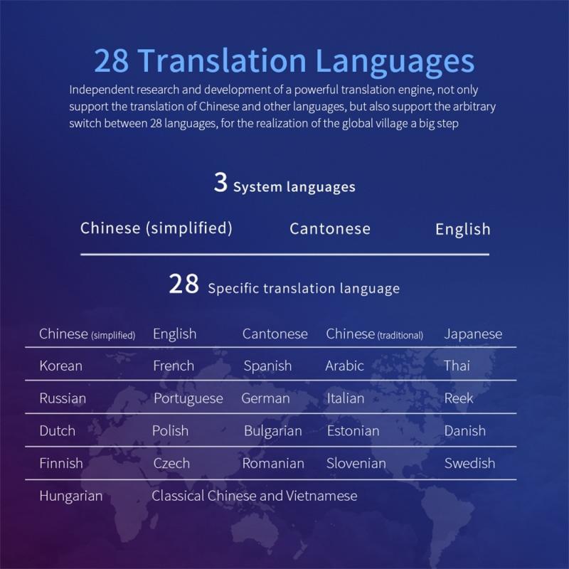 5. Translation in 28 languages (Simplified Chinese, English, Cantonese, Traditional Chinese, Japanese, Korean, French, Spanish, Arabic, Thai, Russian, Portuguese, German, Italian, Greek, Dutch, Polish Language, Bulgarian, Estonian, Danish, Finnish, Czech, Romanian, Slovenian, Swedish, Hungarian)