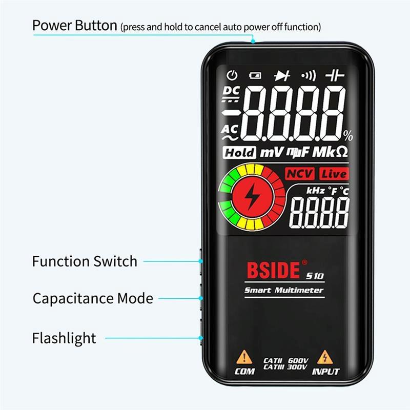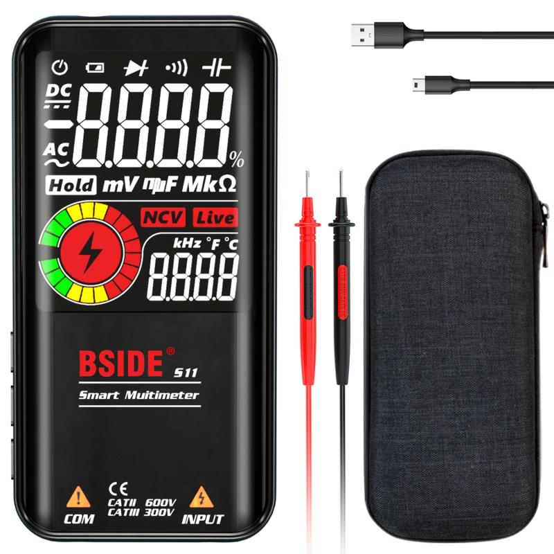 BSIDE Digital Multimeter 9999 Counts LCD Color Display DC AC Voltage Capacitance Diode Meter, Specification: S11 Recharge Version (Black) (BSIDE)