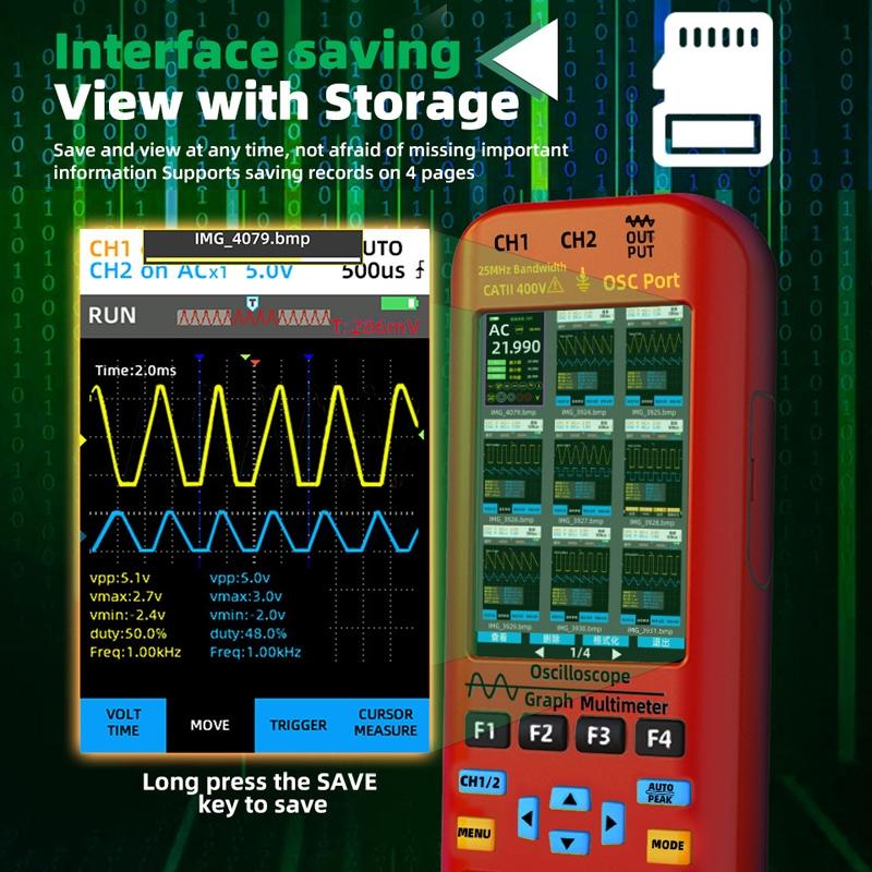 4. Dual-mode (oscilloscope/multimeter) display, switch modes at will to improve work efficiency