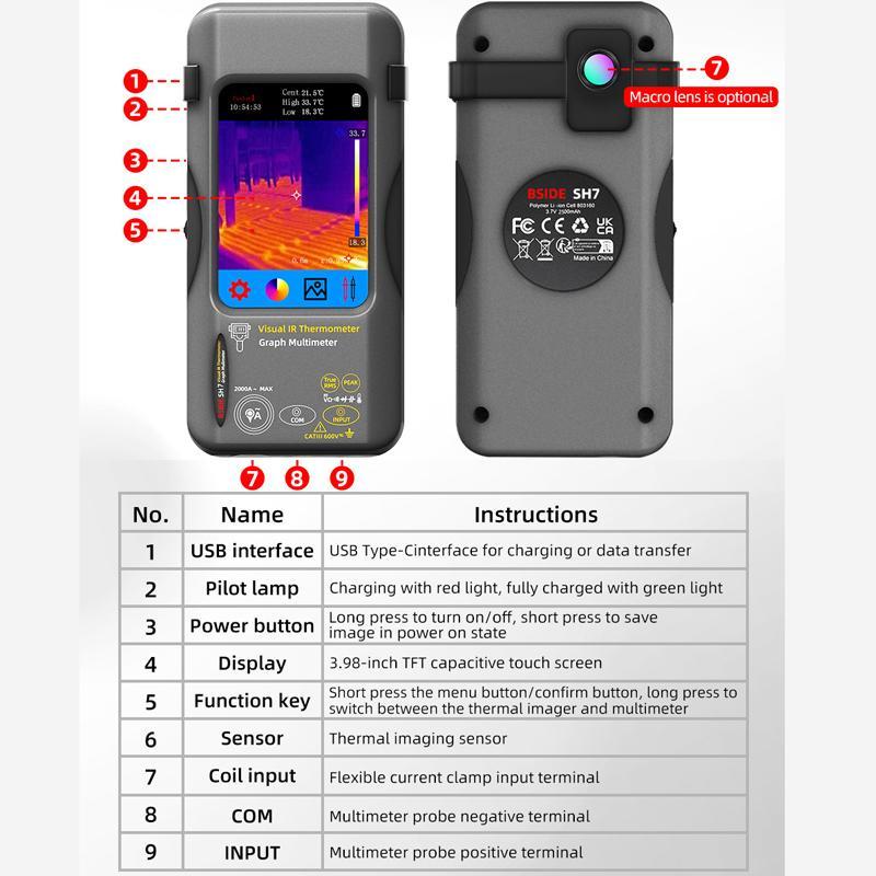 BSIDE SH7 Standard Thermal Imager Multimeter Handheld Touch Screen High Accuracy Thermometer (BSIDE)