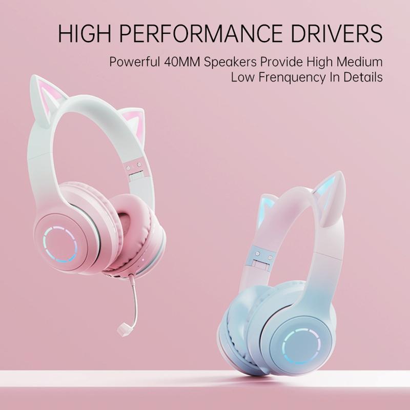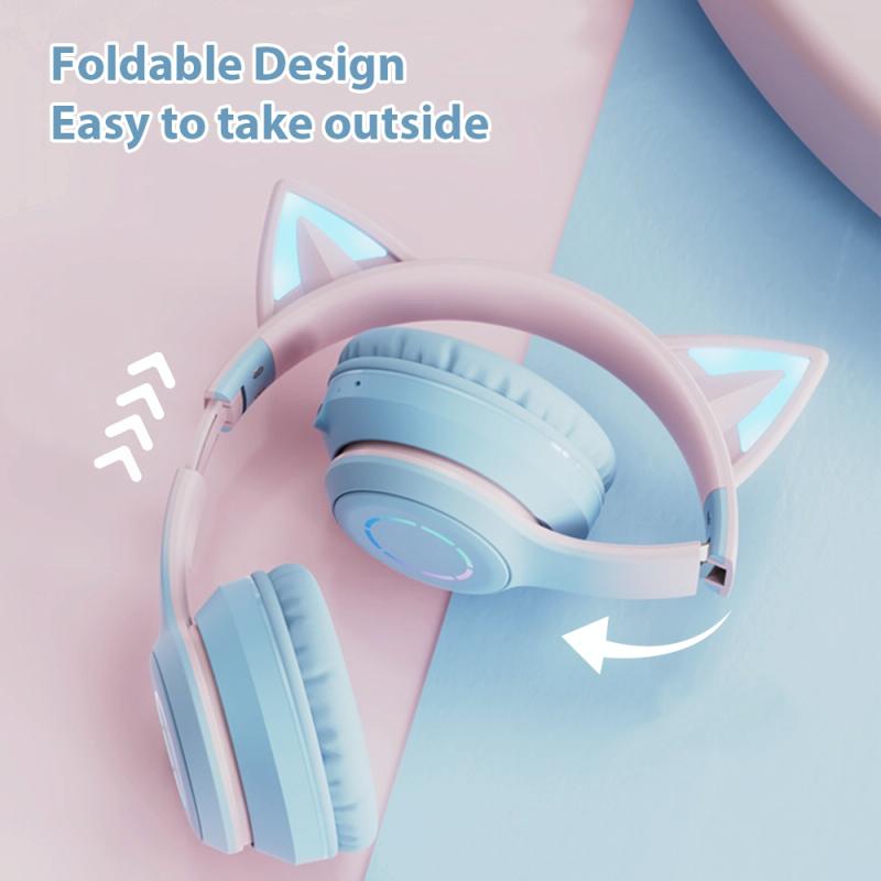 BT029C RGB Dual Modes Cat Ear Wireless Bluetooth Headphone(Green)