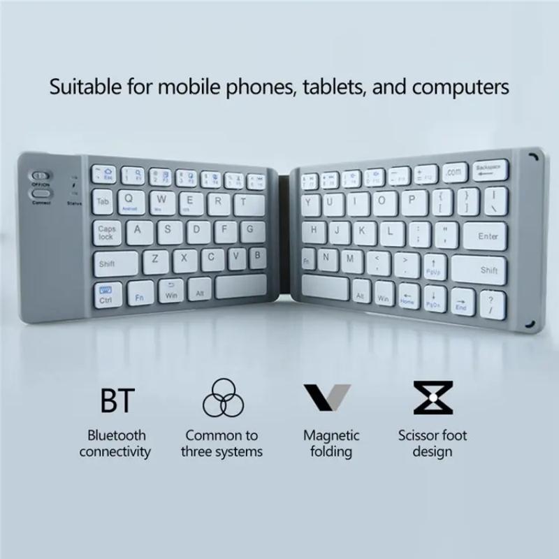 BT18 Bluetooth Keyboard Magnetic Folding Wireless Keyboard For Cell Phones Tablets Computers(Grey)