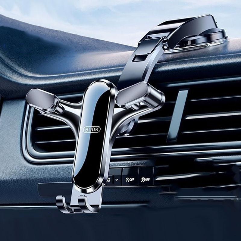 BUDK Triangle Gravity Sensor Car Phone Bracket Car Air Vent Navigation Holder, Model: Bent Suction Cup Base Model (BUDK)