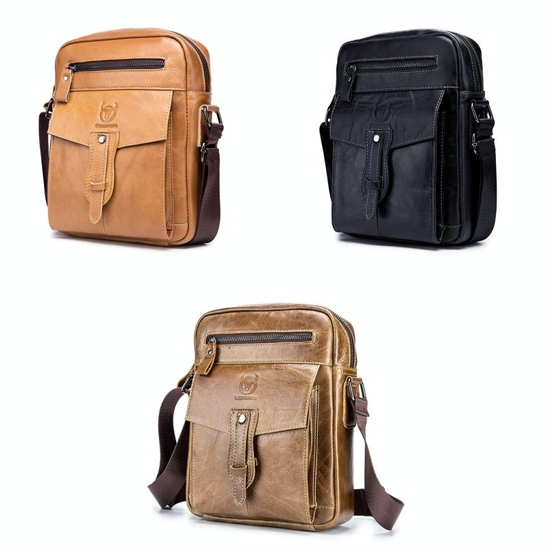 BULL CAPTAIN 053 Men Messenger Bag Cowhide Large Capacity Briefcase, Specification:Small (Black) (BULL CAPTAIN)