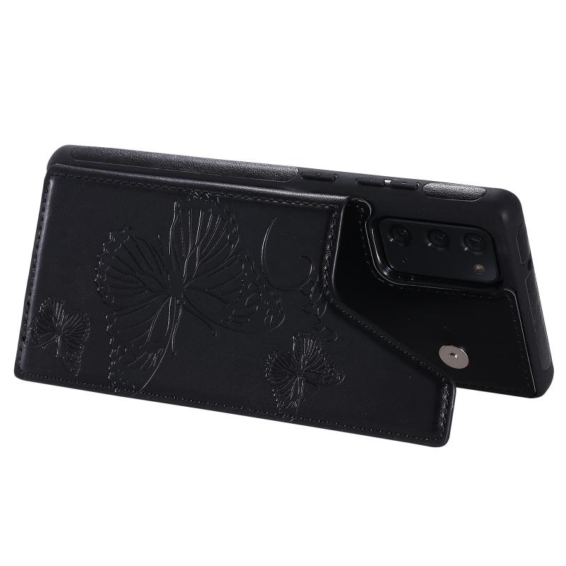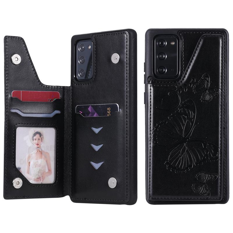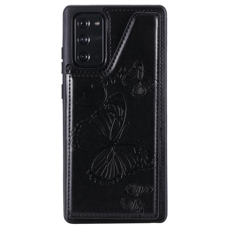 Butterfly Embossing Pattern Shockproof Protective Case with Holder & Card Slots & Photo Frame For Samsung Galaxy Note20(Black)