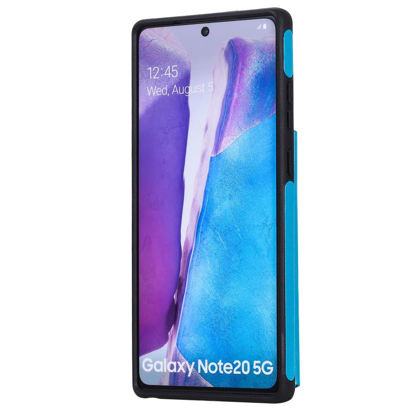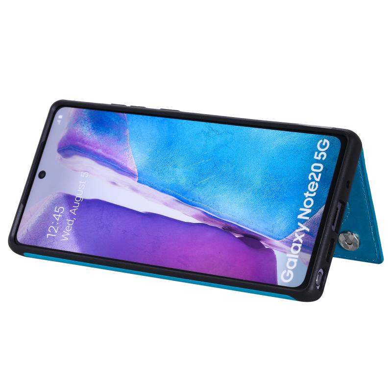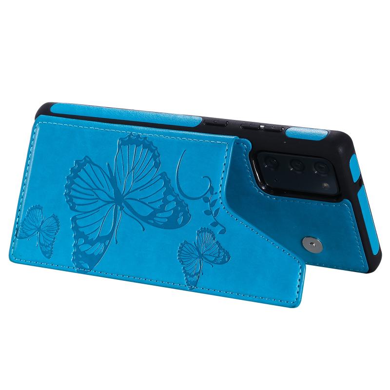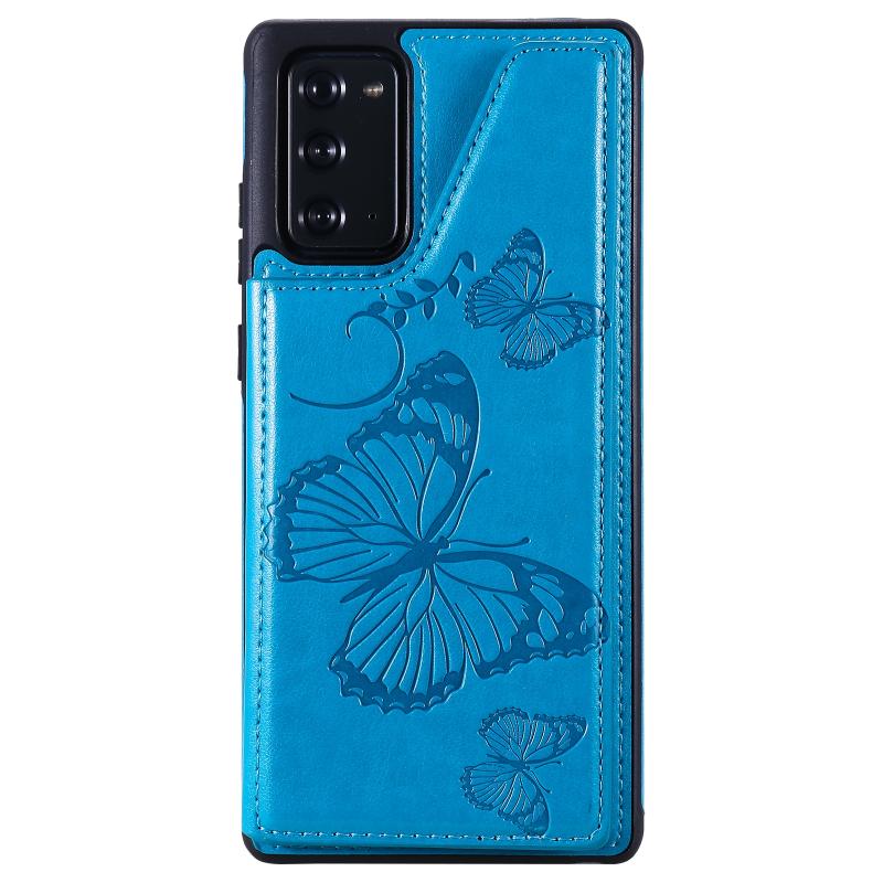 Butterfly Embossing Pattern Shockproof Protective Case with Holder & Card Slots & Photo Frame For Samsung Galaxy Note20(Blue)
