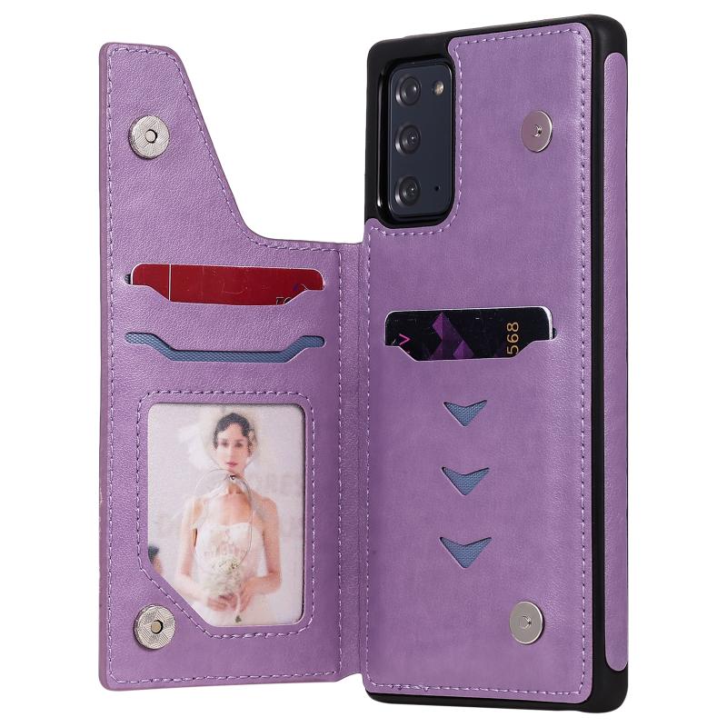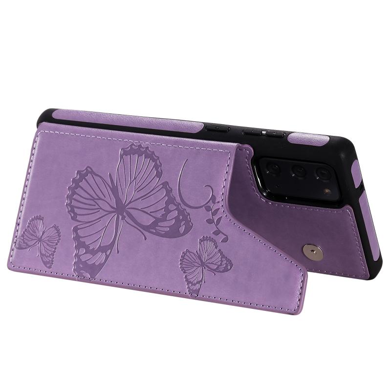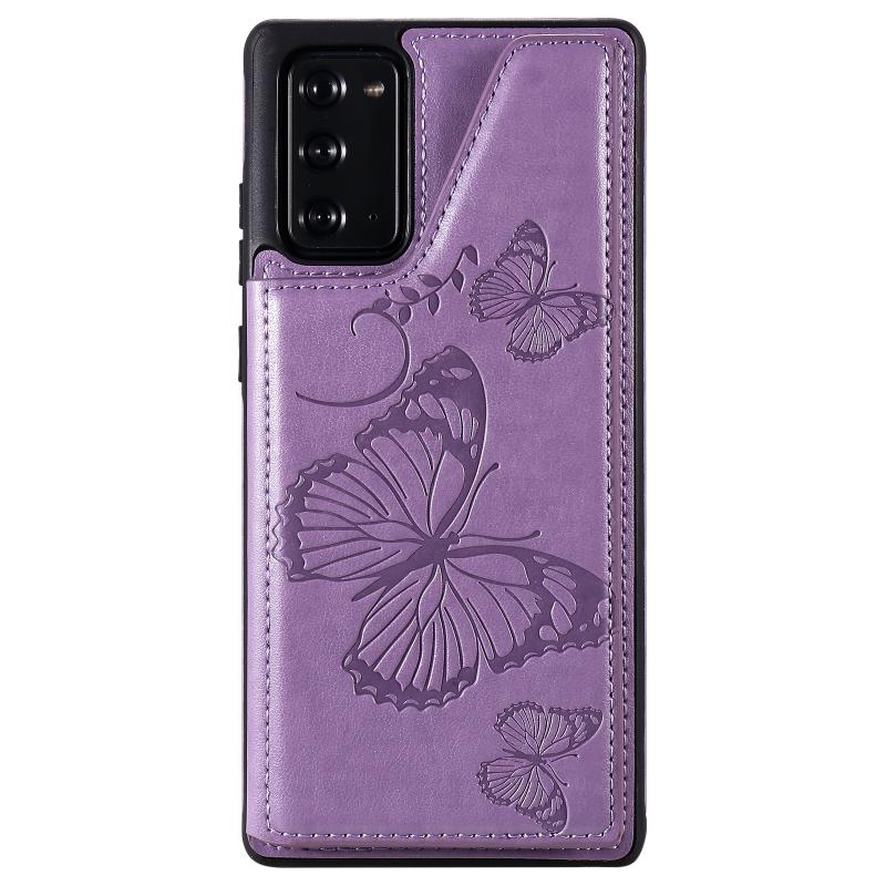 Butterfly Embossing Pattern Shockproof Protective Case with Holder & Card Slots & Photo Frame For Samsung Galaxy Note20(Purple)