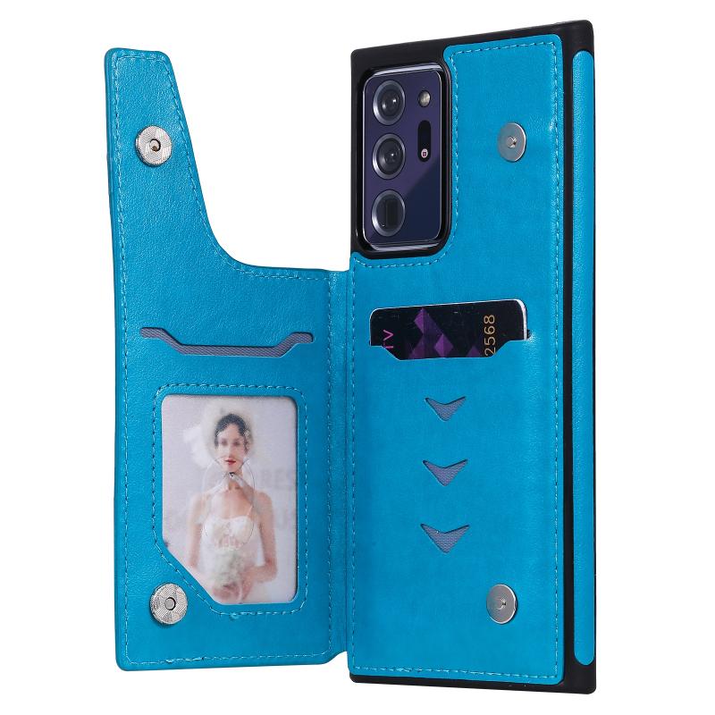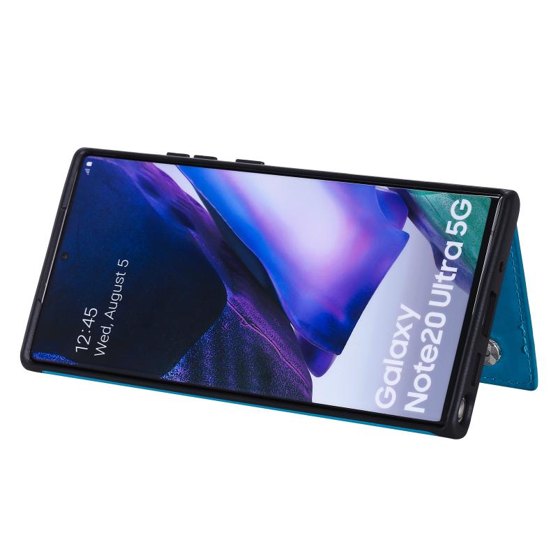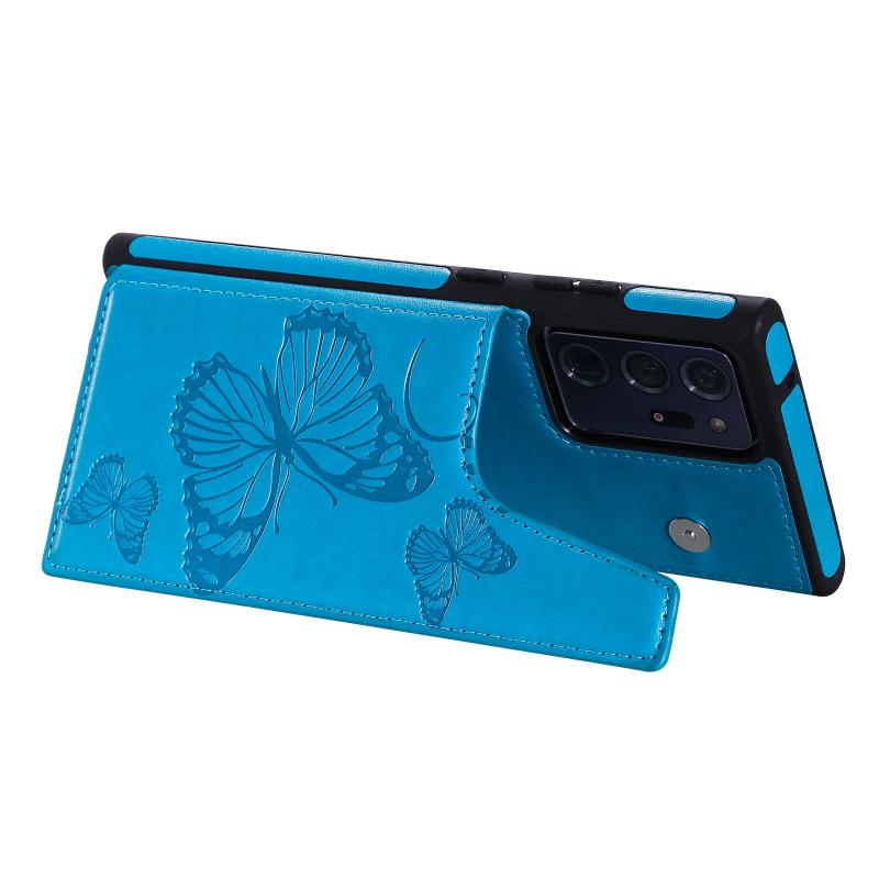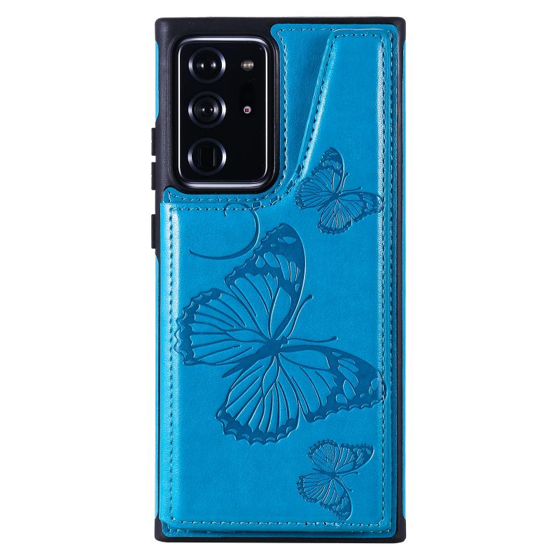 Butterfly Embossing Pattern Shockproof Protective Case with Holder & Card Slots & Photo Frame For Samsung Galaxy Note20 Ultra(Blue)
