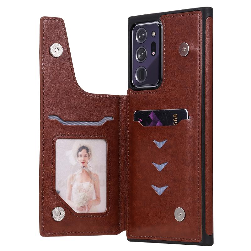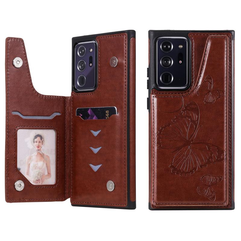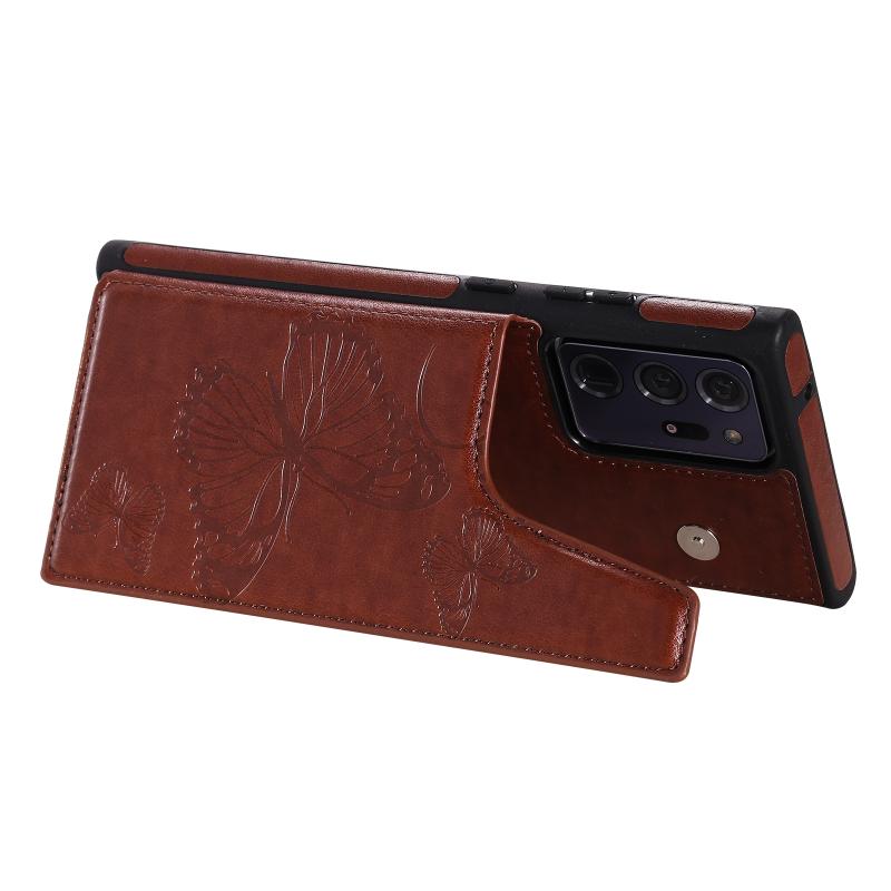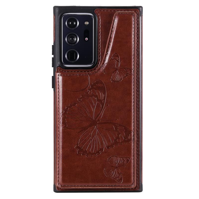 Butterfly Embossing Pattern Shockproof Protective Case with Holder & Card Slots & Photo Frame For Samsung Galaxy Note20 Ultra(Brown)