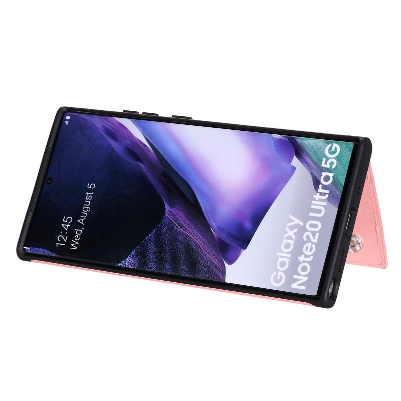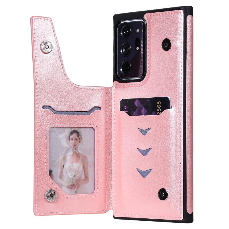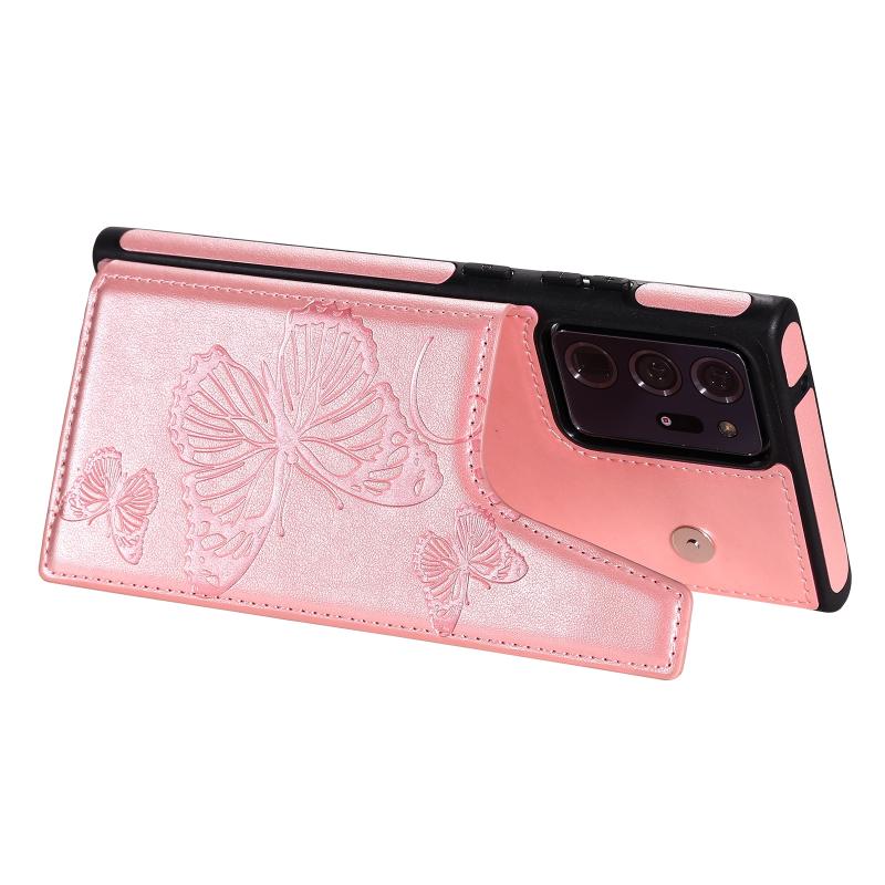Butterfly Embossing Pattern Shockproof Protective Case with Holder & Card Slots & Photo Frame For Samsung Galaxy Note20 Ultra(Rose Gold)