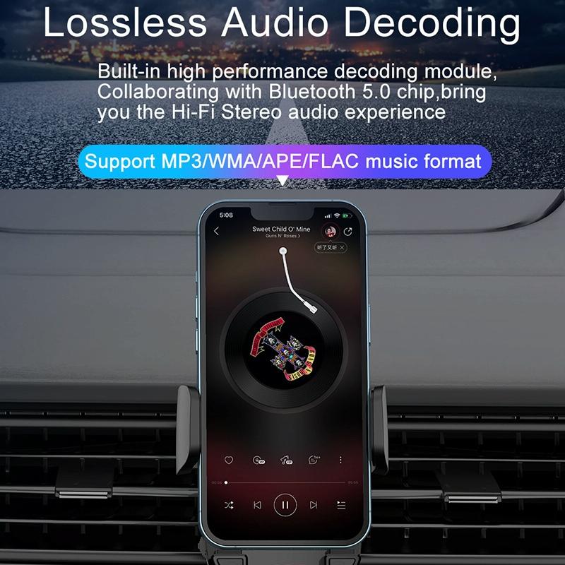 1. Built-in high performance bluetooth chip and WMA/WAV/MP3 decoding chip,it supports U-Disk,TF card music player, and transmit the sound to the original car audio system.