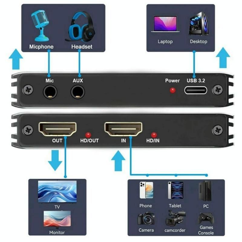 3.Output: 4K HDMI 2.0 pass-through, USB 3.2 (5Gbps), Audio output