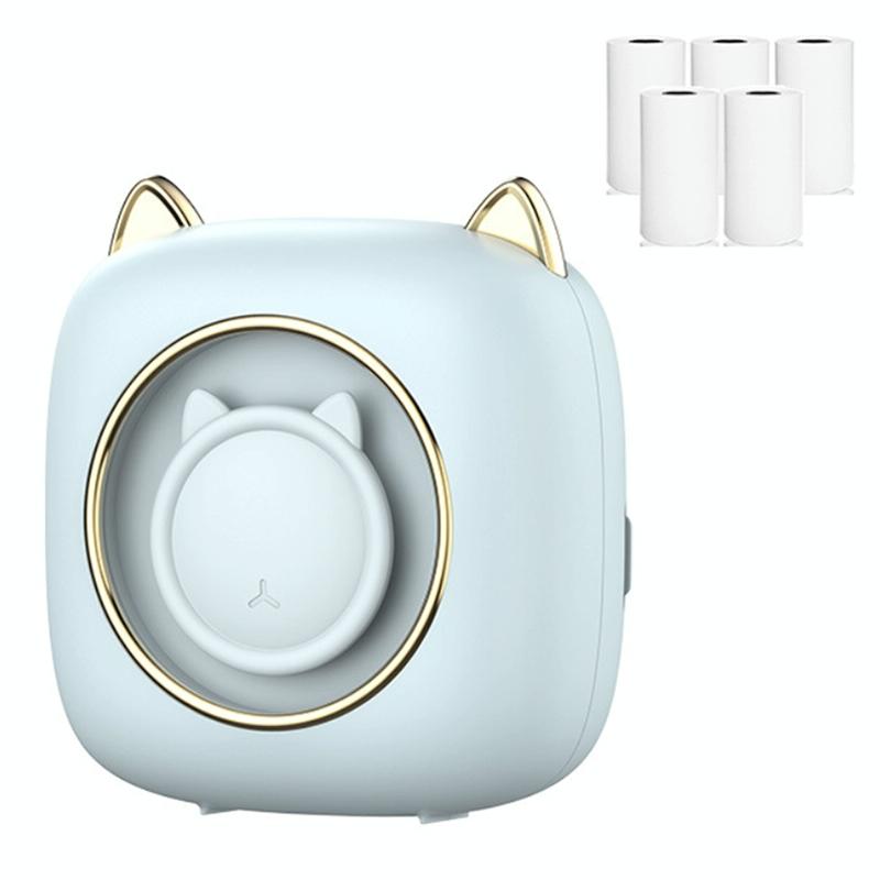 C23 Seven Colors Atmosphere Breathing Light Wireless Thermal Printer, Color: Blue+5 Rolls Thermal Paper