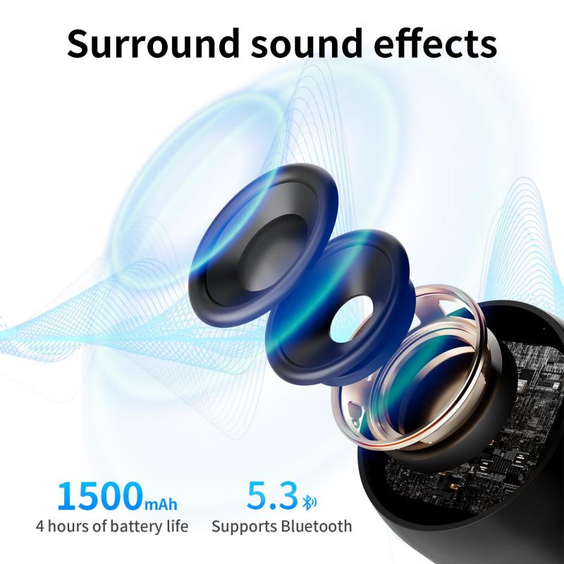 4. Surround sound for a thrilling listening experience. 1500mAh large-capacity battery for long-lasting battery life.