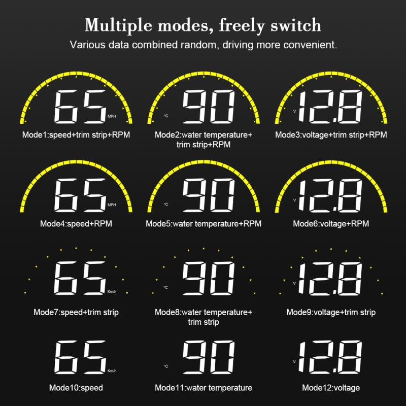 4. HUD short for Head Up Display. It displays driving datas on the front windshield such as speed, RPM, water temperature, voltage etc on the car front window glass; avoiding drivers unsafety because of watching the instrument while driving. Drivers can read the driving information instantly, and can always keep the best state on the way with HUD